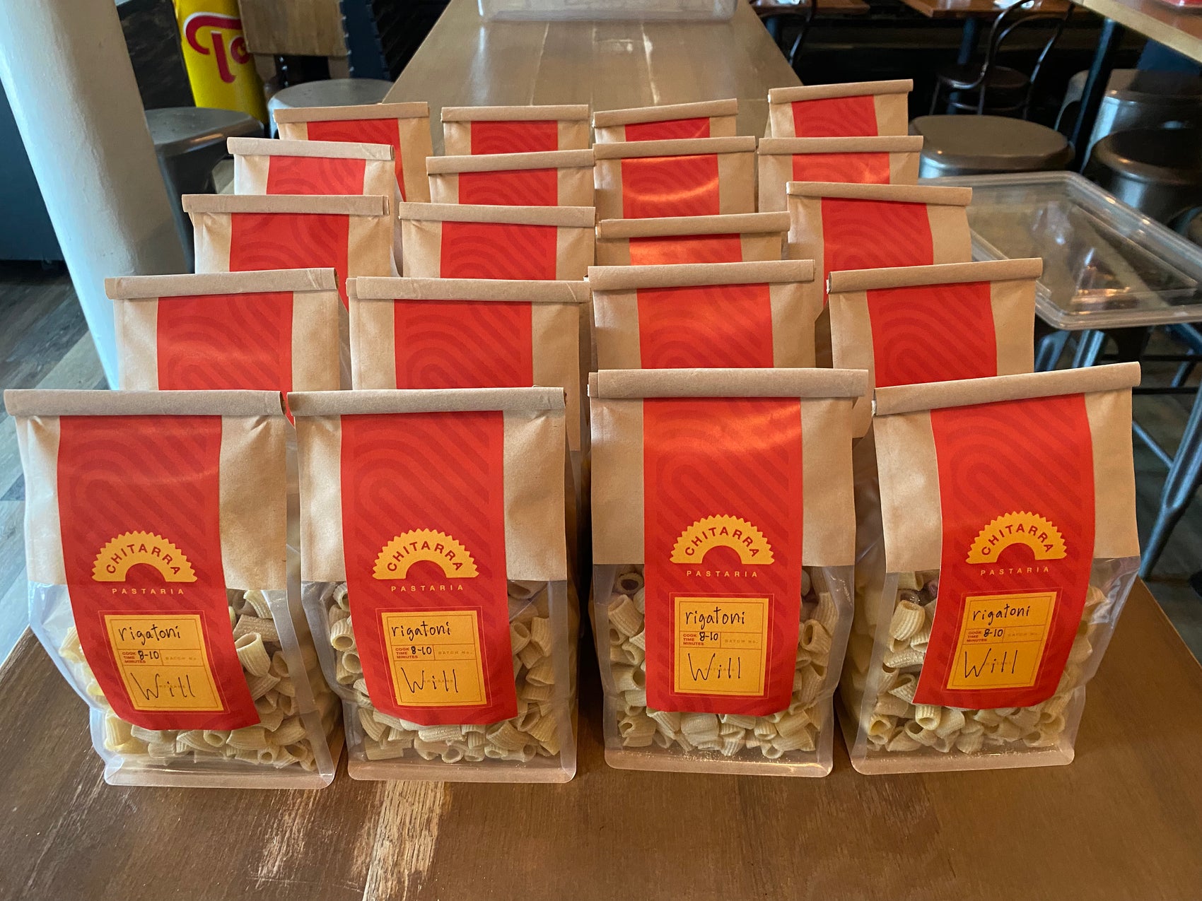Elevate your client, friend, or employee appreciation by building a custom box assembled by our neurodiverse team. Beyond the delicious pasta options include personalized messages, recipe cards, and branded company swag (Chitarra or your own) turn the box into a complete, purpose-driven culinary kitchen experience.